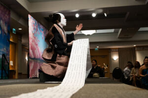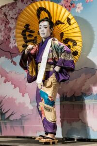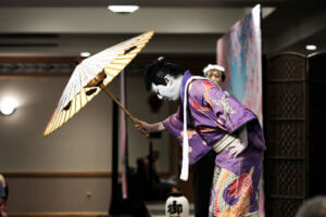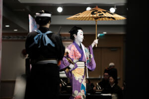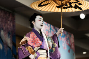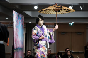 While guests gathered and enjoyed the foyer activities, an equally special transformation was taking place backstage. With the dedicated support of the Hanayagi Dancing Academy staff, the cast was carefully prepared to take the stage as true kabuki stars—complete with traditional makeup, costumes, and the spirit of this timeless art form.