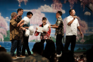 The celebration continued with a special singing performance by two of our talented members -- Craig Hirasaki representing Team White and Jerry Tokairin representing Team Red -- who offered a preview of the beloved Kohaku Red and White Singing Contest. Their performance added a joyful and festive spirit to the evening and delighted the audience.