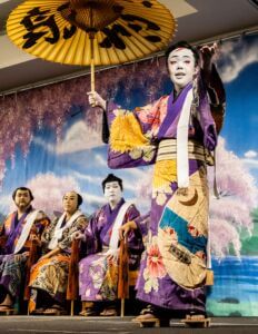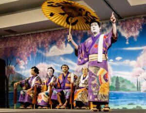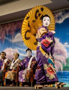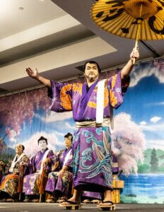 The Hanayagi Dancing Academy has been providing the Kabuki Makeup and Kimono for the Gonin Otoko Cast since 1938, and their continued commitment to this tradition is nothing short of extraordinary. Their unwavering support of the Chamber over the decades, and their tireless efforts to perpetuate Japanese cultural traditions here in Hawaiʻi, are deeply appreciated.